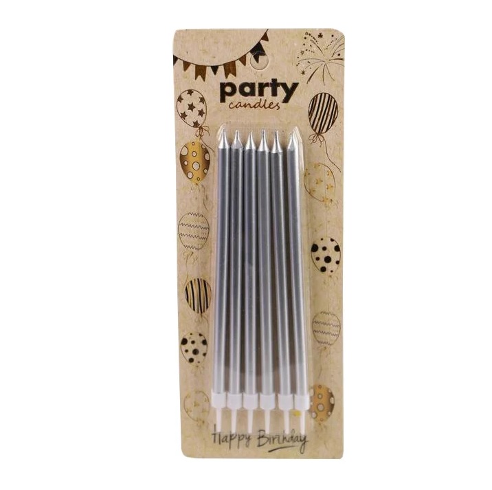 Свечи "Металлик" для торта, серебро, высокие, 6 шт